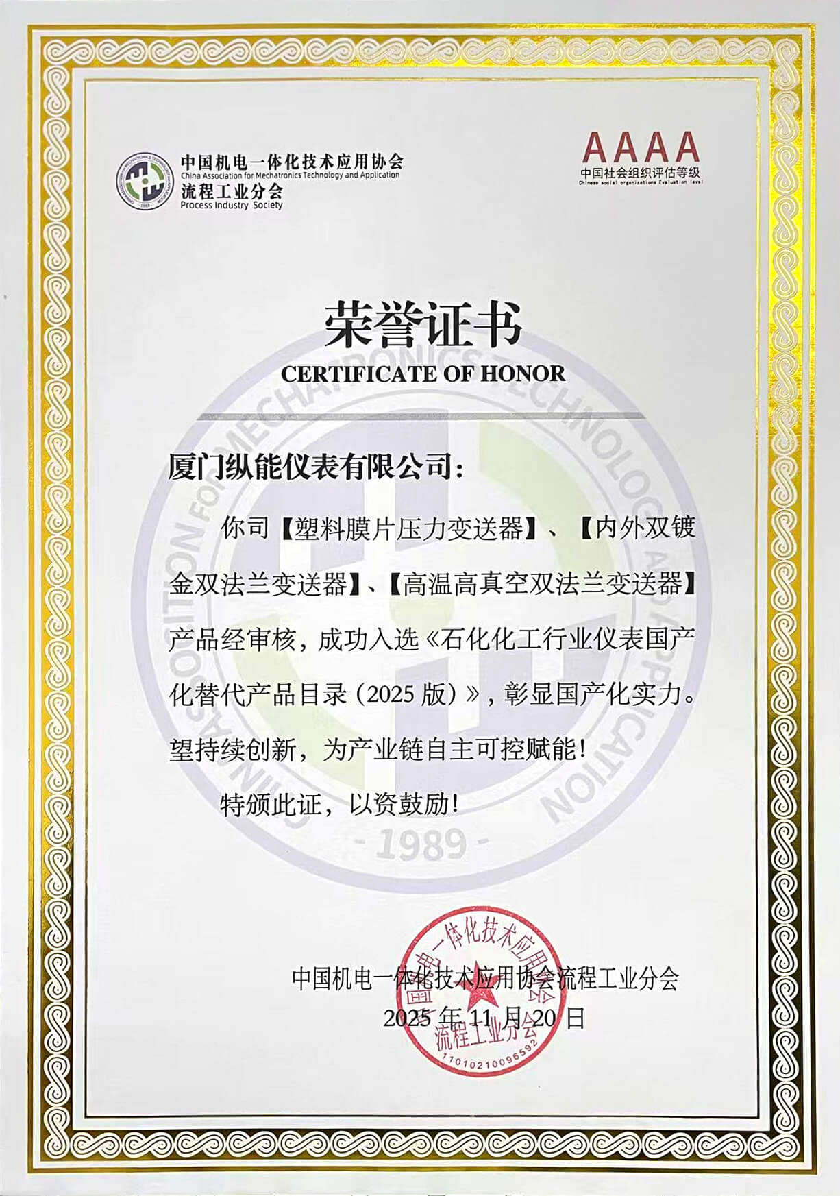厦门纵能电子科技有限公司创立于2009年,作为工业自动化领域的创新实践者,公司专注于为过程控制工业提供全场景智能测量解决方案。我们构建了涵盖压力、温度、物位、流量等关键参数的全流程现场仪表体系,并配套先进的数据采集管理系统,助力工业企业实现数字化转型升级。