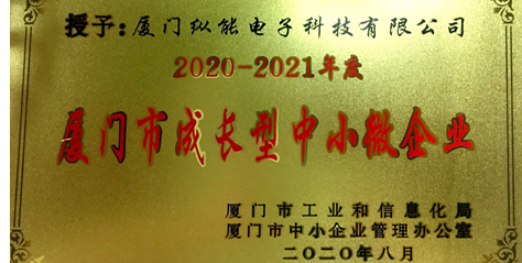2020年8月厦门纵能电子科技有限公司荣获厦门市工业和信息化局及厦门市中小企业管理办公室授予的2020-2021年度“厦门市成长型中小微企业”荣誉称号,并颁发奖牌。...