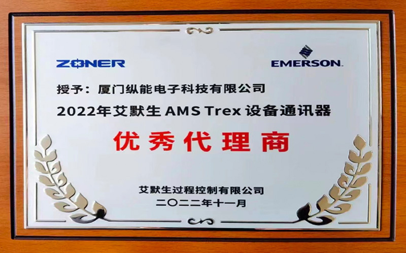 热烈祝贺我司荣获2022年度“艾默生AMS TREX设备通讯器优秀代理商”资质