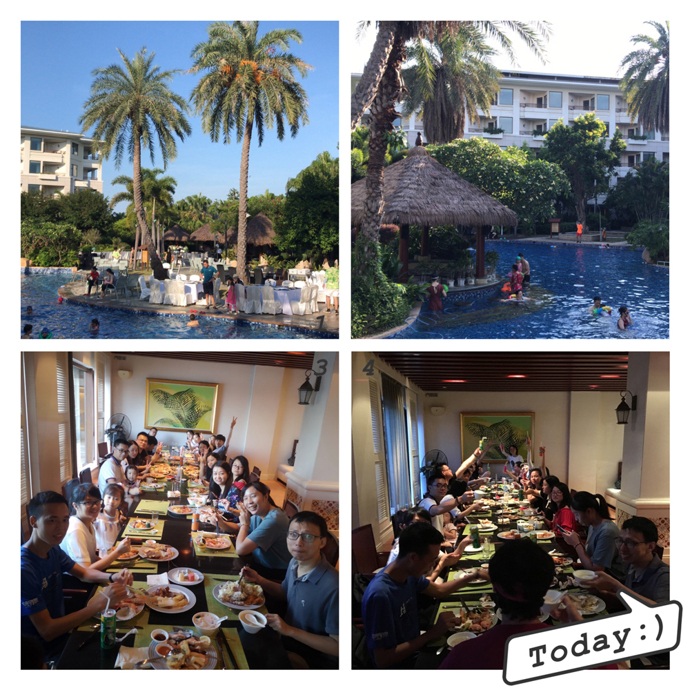 全员活动结束后,大家一起前往位于厦门风光旖旎的环岛南路,宛若一座天然氧吧的厦门海悦山庄酒店自助晚餐,酒店融合了美丽的海滨风情和世界一流的园林景观,依山面海,设施奢华,让大家感受到休闲度假的体验。自助晚餐菜品是相当的丰富,超多的生猛海鲜,现点烤肉、闽南小吃及缤纷热菜,还有女生们钟爱的慕斯蛋糕、布丁、冰激凌等甜品,餐厅布置典雅怀旧,落地窗的观景台,舒适的原木桌椅,眼前就是沁蓝的户外无边际泳池美景,大家静坐沙发赏花赏月尝美食,美哉美哉!