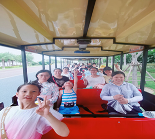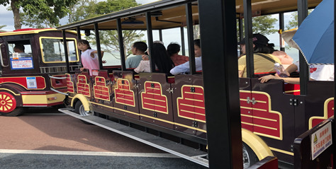 来到海边,最舒服的莫过于吹着海风,踏着海浪去感受大海带给我们的“慢生活”,让我们去感受生活的美好;先来个团体小火车环行游,这种惬意让小伙伴们个个脸上都洋溢着快乐的笑容。