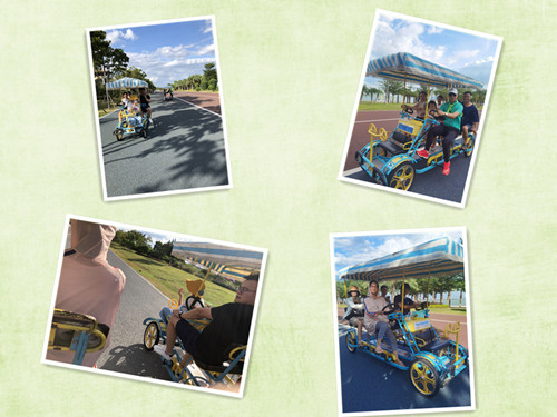 说到团建,怎能少了团队分工合作呢,这不,我们纵能大家庭分成各个小分队,进行多人自行车骑行比赛,虽然天气有点炎热,但各分队仍齐心协力地用力踏着踏板,想着超过彼此,