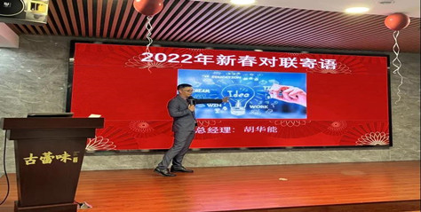 最后由总经理--胡总为大家送上2022年新春对联寄语,携手并进,共创未来!
