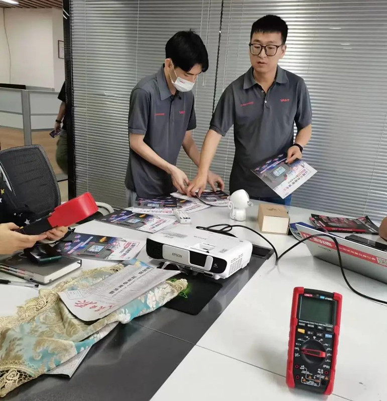 6月7日,纵能科技邀请UNI-T品牌(优利德)厂家技术团队廖工等工程师来我司进行产品培训,全面提升我司员工关于优利德产品知识基础水平,丰富技术选型经验。