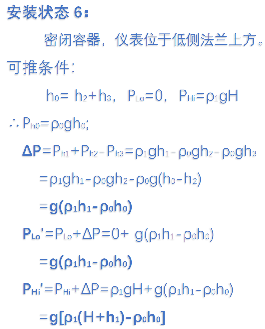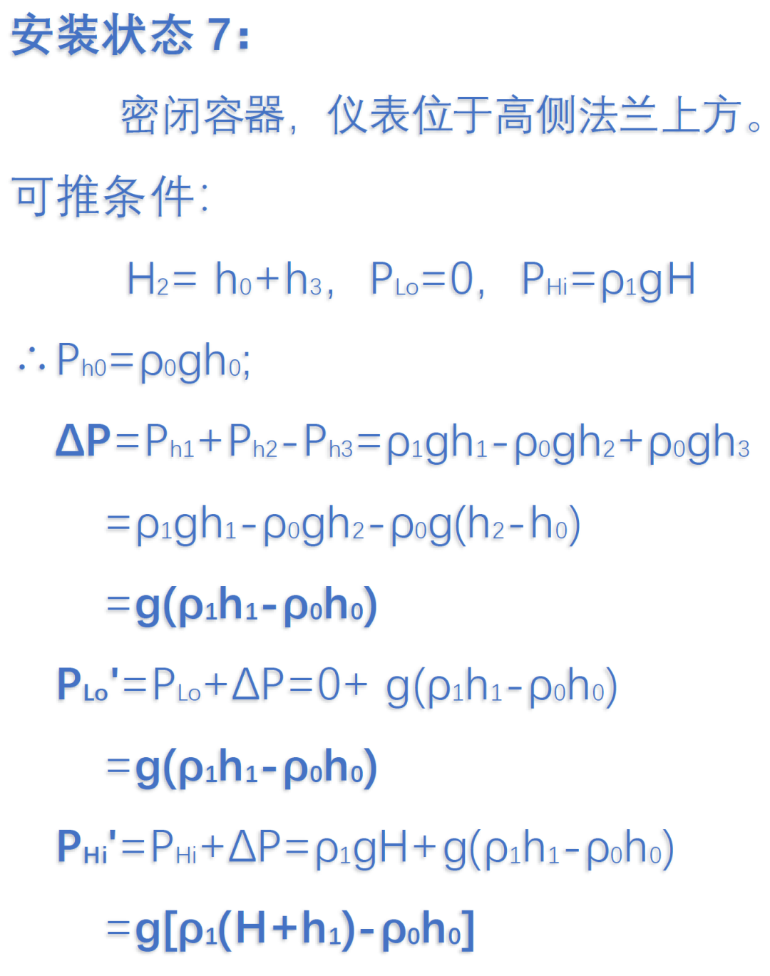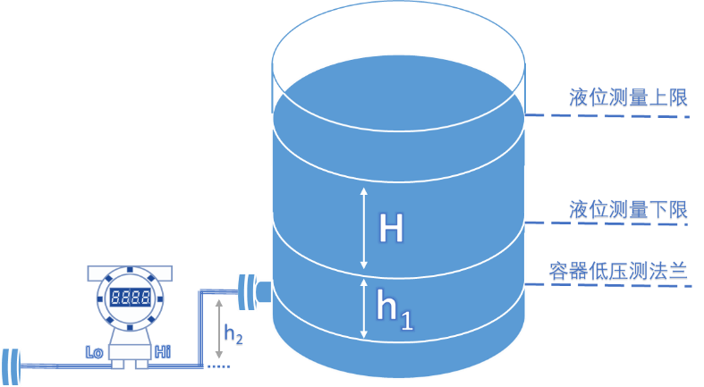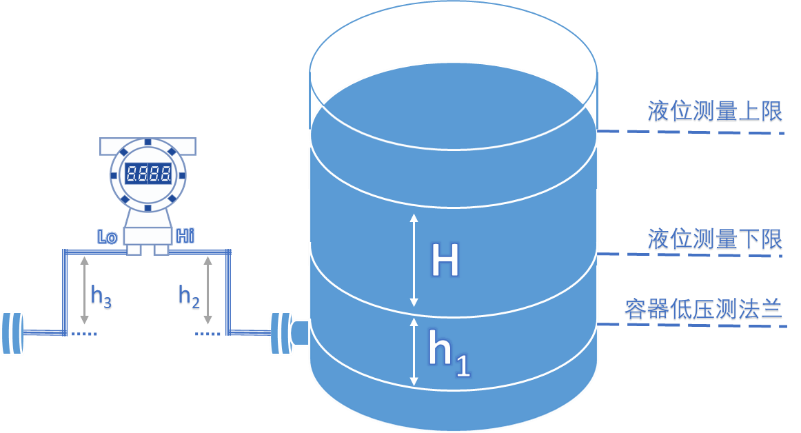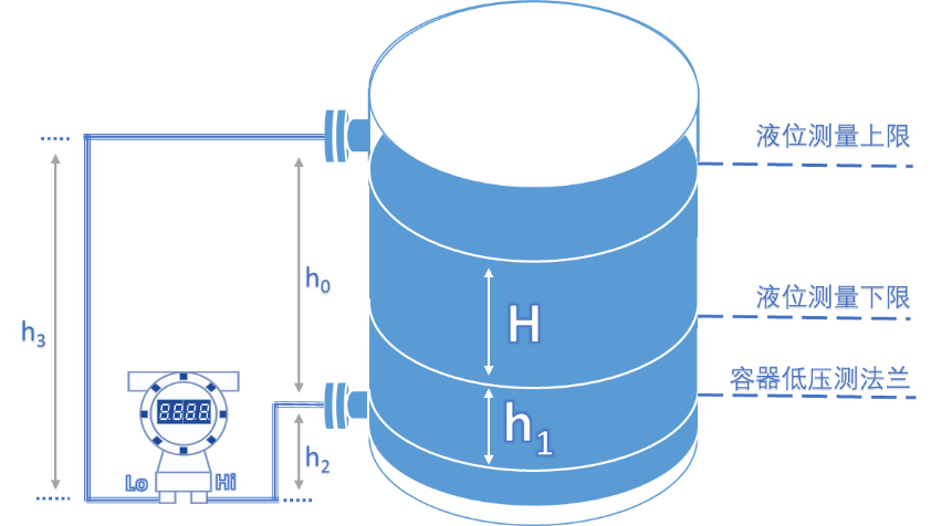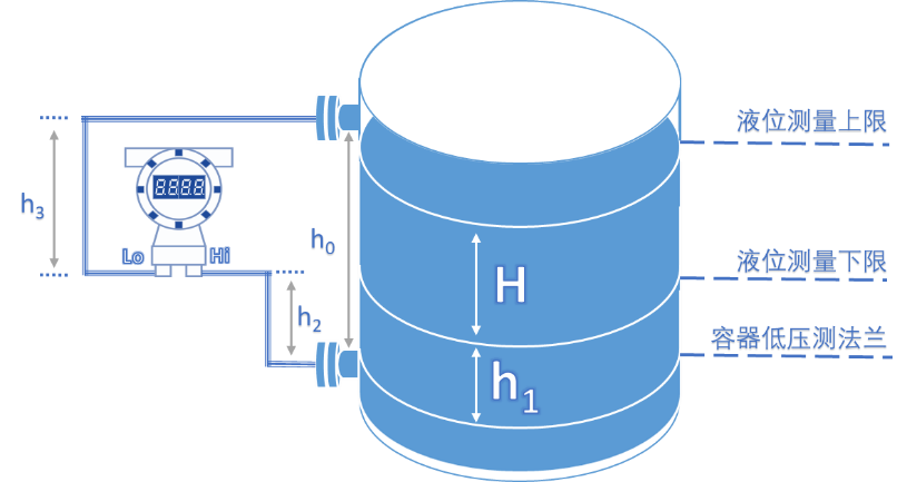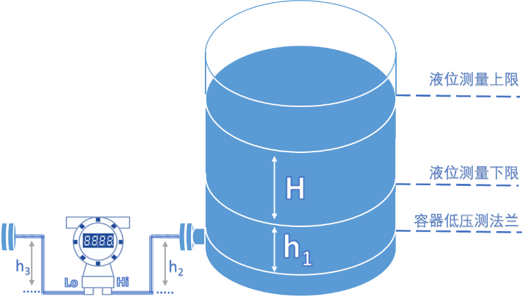 基本使用到的公式P=ρgh,其中根据不同介质中的不同液位高度统一计算,可以分别得出我们需要的液位测量上下限的差压量程。