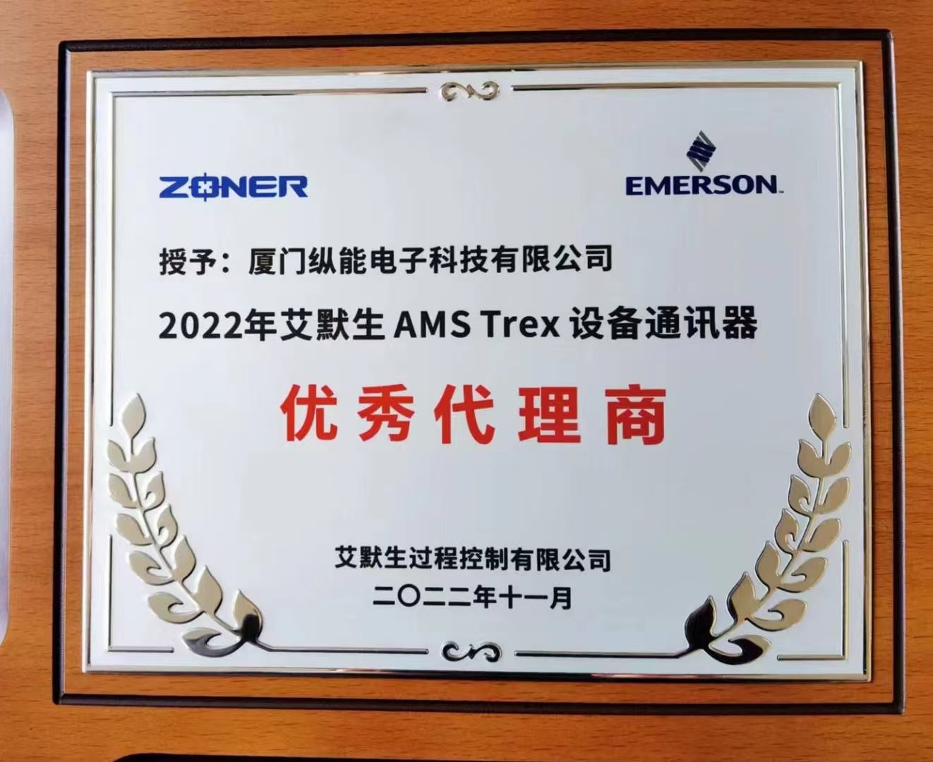 热烈庆祝我司荣获2022年度“艾默生AMS TREX设备通讯器优秀代理商”资质!