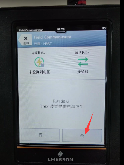 1、开机,将TREX手操器与PMP51B压力变送器连接;