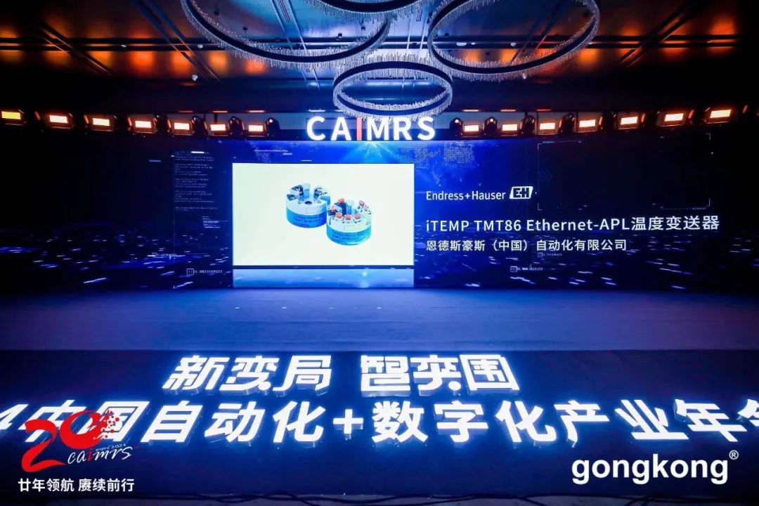 大会的主论坛环节公布了备受期待的“2024中国自动化+数字化品牌50强排行榜”。恩德斯豪斯较上一年度的榜单,排名上升了一位,位列第11位,体现了近年来稳健的增长发展态势。此外,恩德斯豪斯凭借iTEMP TMT86 Ethernet-APL温度变送器获得大会检测类自动化创新奖。