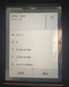 7、 Relay Type(A orC),选择AorC点确定按钮,到下一菜单,选择Travel contro行程控制,点确定按钮。