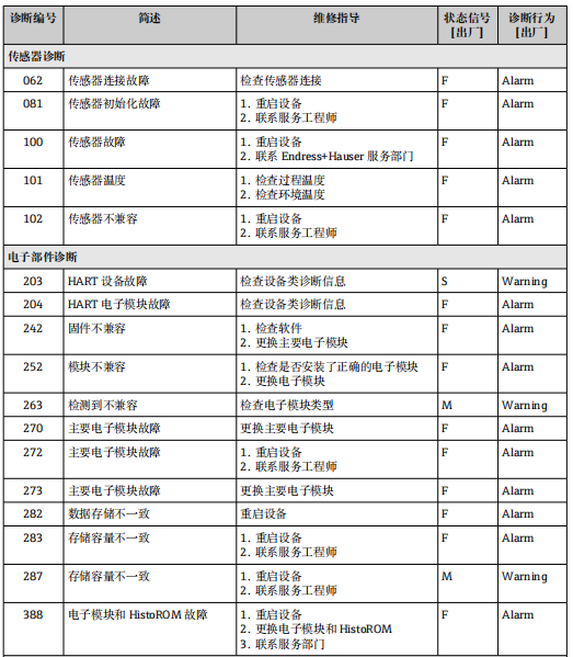 如果上述补救措施未能解决问题,请联系 Endress+Hauser售后中心。
