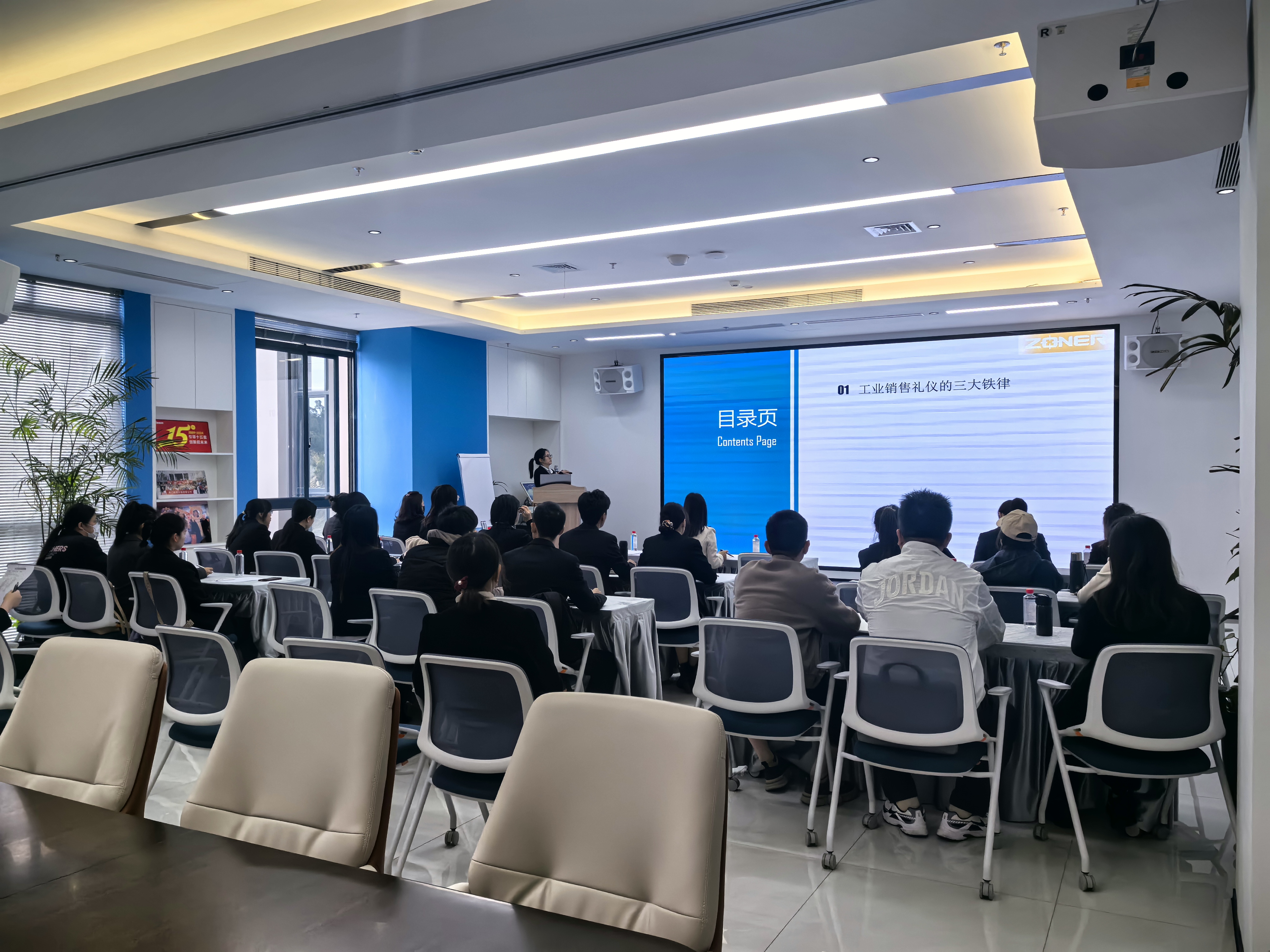 培训中进行了现场问答和现场示范,同事们热情积极参与互动,安排了各种场景模拟环节,通过邀请现场学员上台演示的方式,对握手礼仪、引导礼仪、会场布置等常用场景的礼仪作进一步指导。