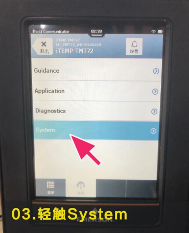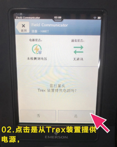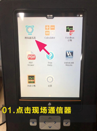 变送器连接后,打开应用程序,请触击 Trex 主页屏幕上的现场手持通讯器图标,详细步骤如下: