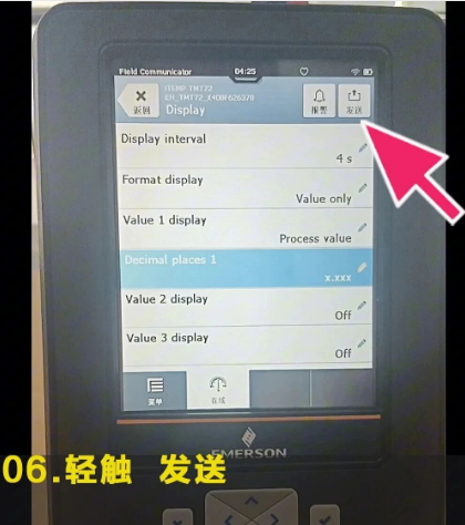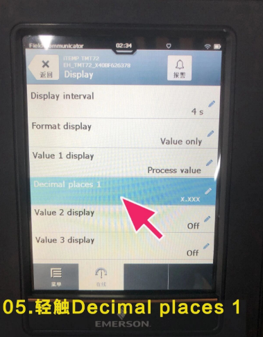 TREX手操器调试E+H温度变送器TMT72显示小数位数操作路径: