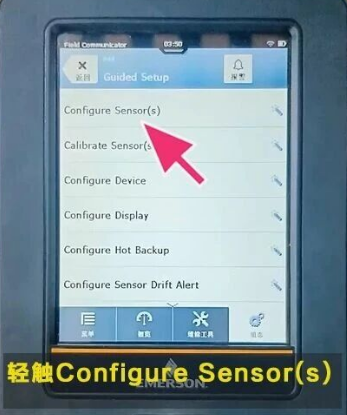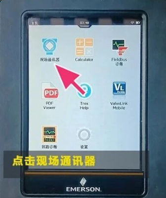 变送器连接后,打开应用程序,请触击 Trex 主页屏幕上的现场手持通讯器图标,详细步骤如下: