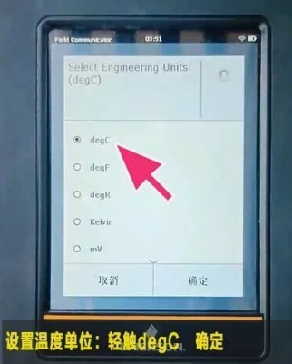 -->设置温度单位Select Engineering Units:,轻触degC确定-->确定