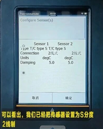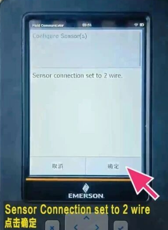 -->在Sensor Connection set to 2 wire(传感器连接设置为2线) 点击确定