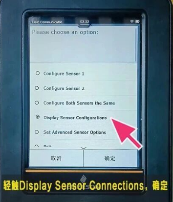 -->轻触Display Sensor Connections(显示传感器连接)确定
