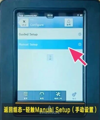 01、 回到组态界面,-->轻触Manual Setup (手动设置) 设置量程范围
