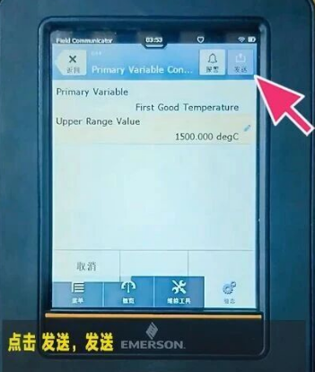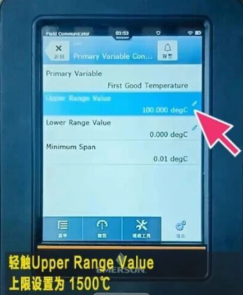 3. -->轻触Upper Range Value 上限设置为 1500℃