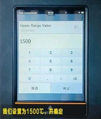 轻触Upper Range Value 上限设置为 1500℃
